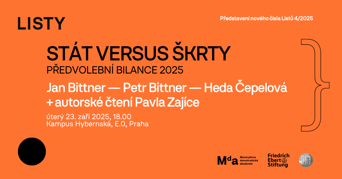 Přijďte na představení nových Listů spojené s předvolebním účtováním bratří Bittnerů z ekonomicko-společenského podcastu Škrty a pravidelné autorky Listů Hedy Čepelové.