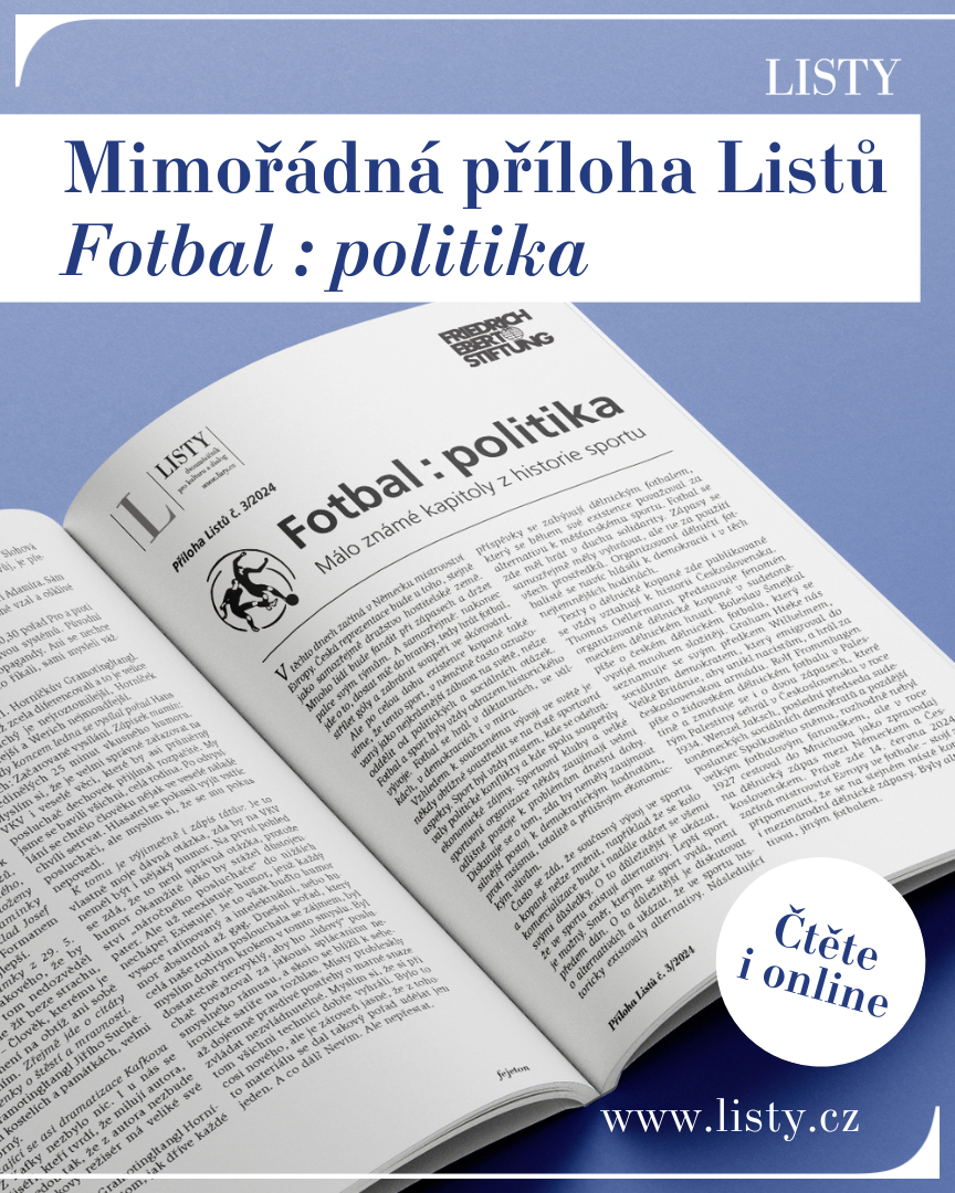Jste svědky velmi výjimečné události: Listy se věnují sportu. A ne jen tak, tímto číslem se zařazujeme mezi tituly se speciální fotbalovou přílohou. Nečekejte však prognózu výsledku nadcházejího fotbalového Mistrovství Evropy. Místo toho vám představíme málo známé kapitoly z historie fotbalu ukazující, že jsou možné alternativy k hlavní vývojové větvi fotbalu.